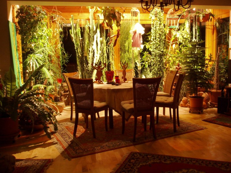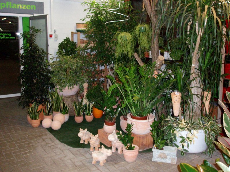 Aus der Vielzahl von Topfpflanzen, grün-blühend,
